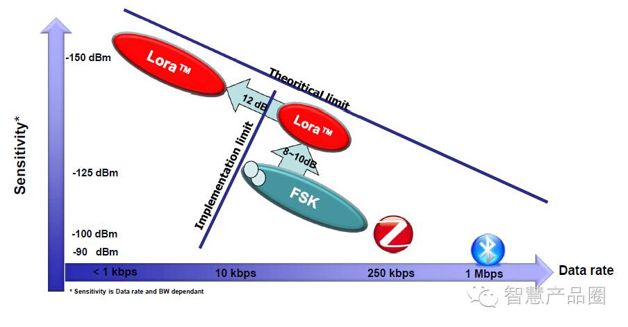 LoRa的誕生比NB-IoT要早些,2013年8月,Semtech公司向業界發布了一種新型的基于1GHz以下的超長距低功耗數據傳輸技術(Long Range,簡稱LoRa)的芯片。其接受靈敏度達到了驚人的-148dbm,與業界其他先進水平的sub-GHz芯片相比,最高的接收靈敏度改善了20db以上,這確保了網絡連接可靠性。