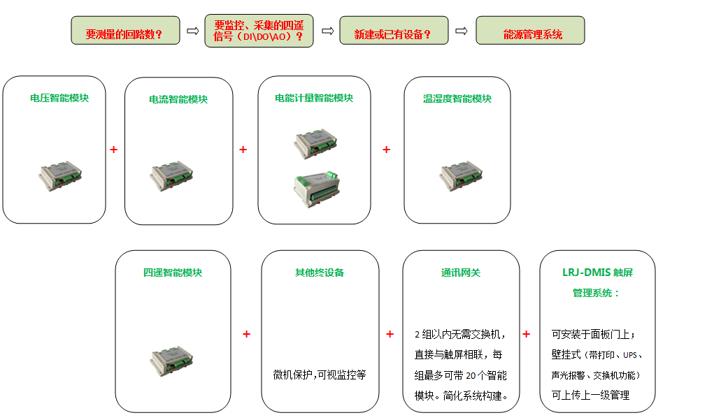 電能監控系統:1個觸屏管理系統 N個電能模塊