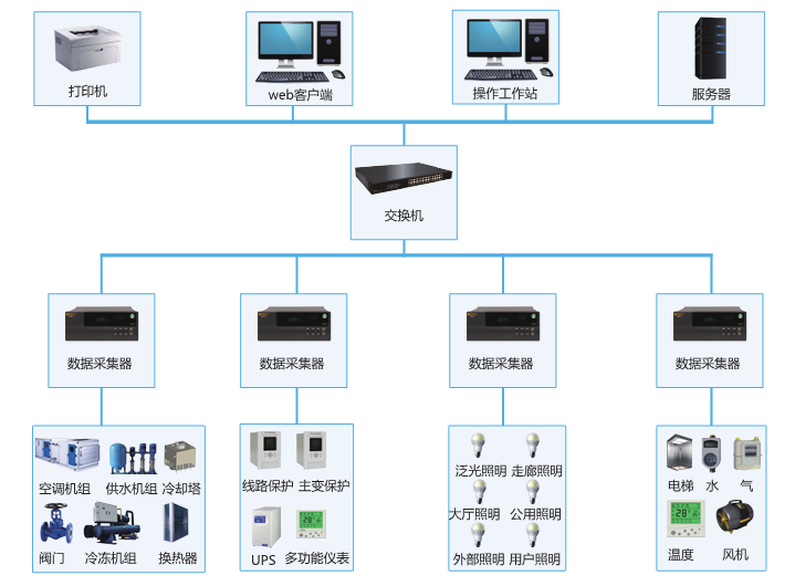 建筑能效管理系統,是通過對建筑安裝分類和分項能耗計量裝置,采用遠程傳輸等手段及時采集能耗數據,實現重點建筑能耗的在線監測和動態分析功能。現場配備數據采集服務器,完成數據采集包接收、數據采集網關命令下達、數據上傳、數據同步等功能。